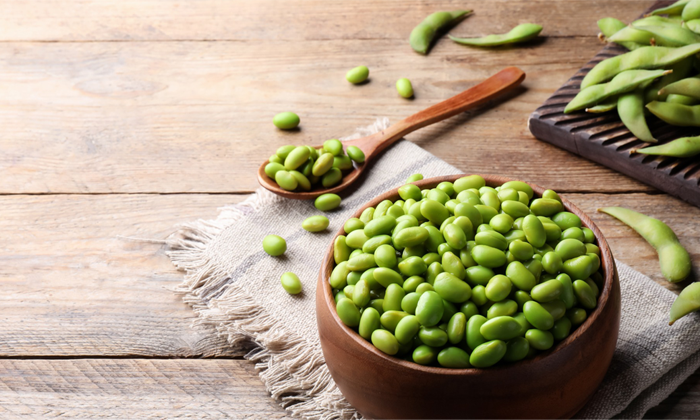 - Bring a pot of water to a boil. Add salt and edamame and cook for 4 minutes. Remove using a slotted spoon and rinse edamame with cold water. Let drain and set aside.